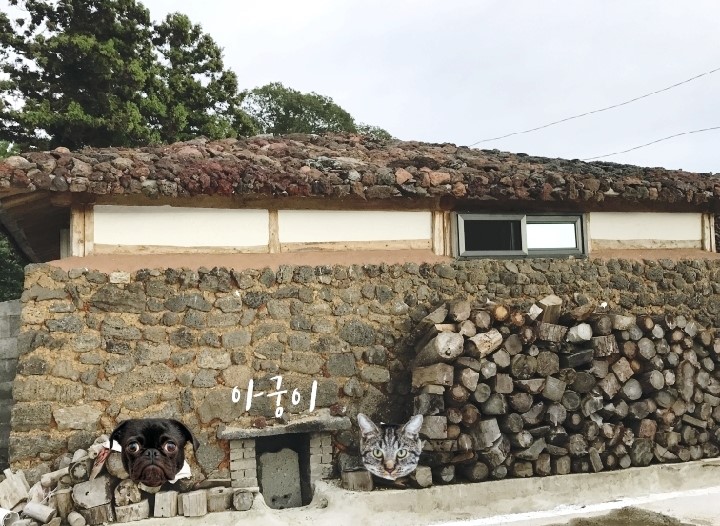 "할아버지네 민박" 집은, 제주도 돌과 편백나무 그리고 흙을 재료로 사용하여 만들었다고 합니다.